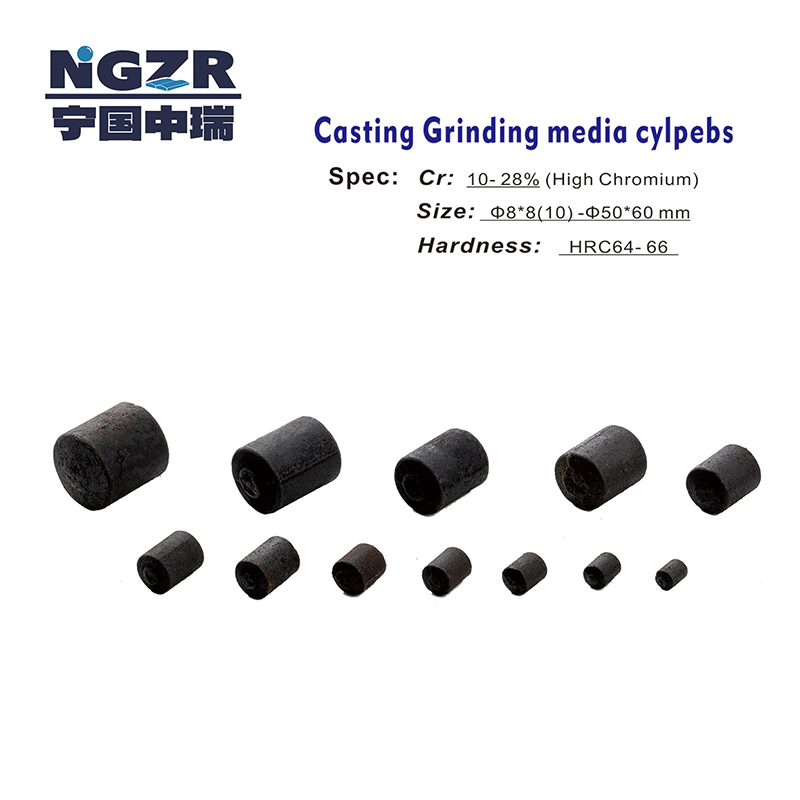 研磨介质(球或cylpebs)是一种在球厂中使用的载体,以帮助压碎和磨碎矿物质。对于水泥球磨坊,第一个腔室将使用大尺寸的球或几个圆柱体,第二个腔室将使用小尺寸的cylpebs。 Cylpebs是圆柱形的,这种形状的研磨效率比小尺寸的球更好。而且,超高铬(CR:16-28%)铸造的球和cylpeb具有高硬度(HRC 58-67),并且较少的培养基消耗量较少,它是水泥和其他高硬度矿物(如铅锌矿石和石英沙)的最佳选择。